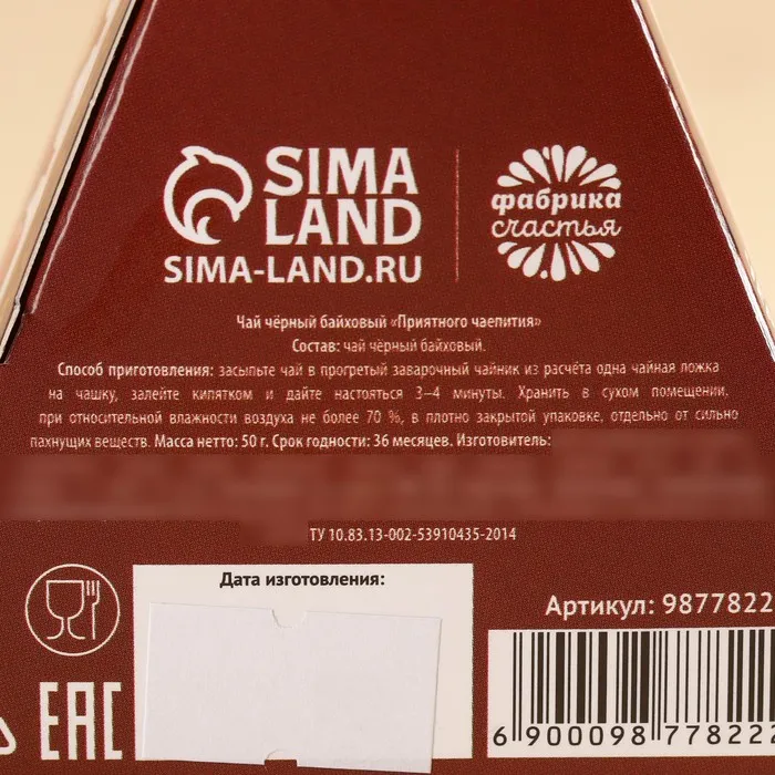 Чай чёрный в коробке-тортике «Приятного чаепития», 50 г. — Характеристики