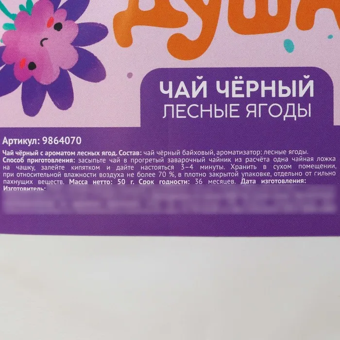 Чай чёрный «Воспитатель», вкус: лесные ягоды, 50 г — Характеристики