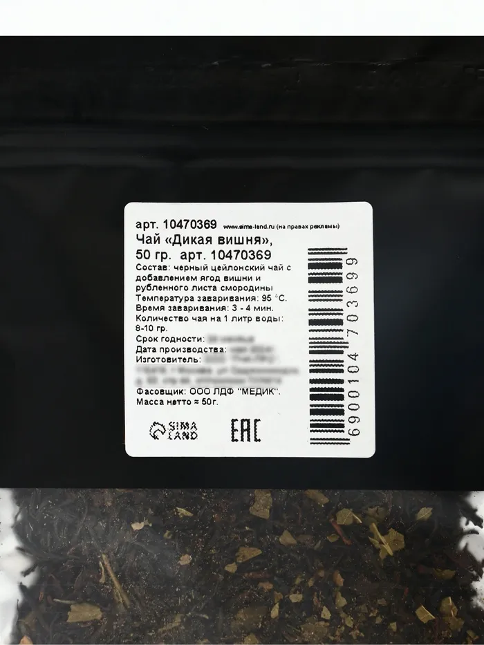 Упаковка в 50 г позволяет удобно хранить чай, сохраняет его свежесть и аромат. Чай "Дикая вишня" станет отличным дополнением к вашему чаепитию и прекрасным подарком для друзей и близких. Откройте для себя волшебный мир вкусов с Чаем "Дикая вишня"!