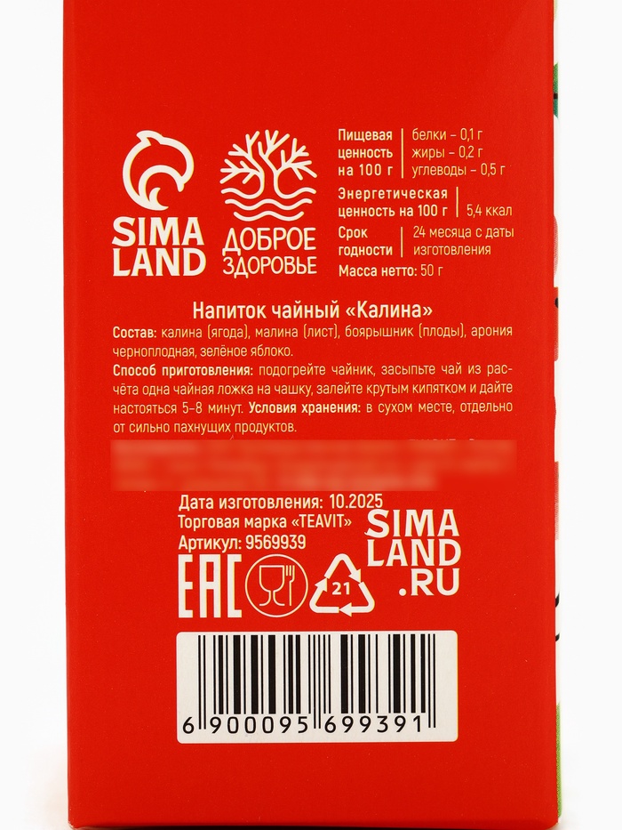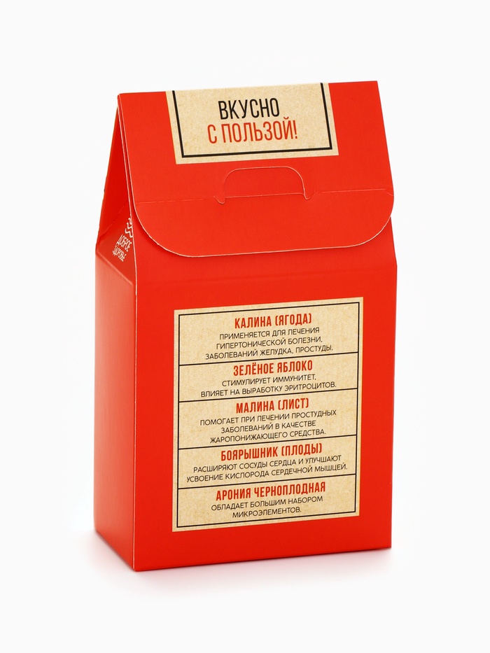 Состав: калина (ягода), малина (лист), боярышник (плоды), арония черноплодная, зелёное яблоко.
