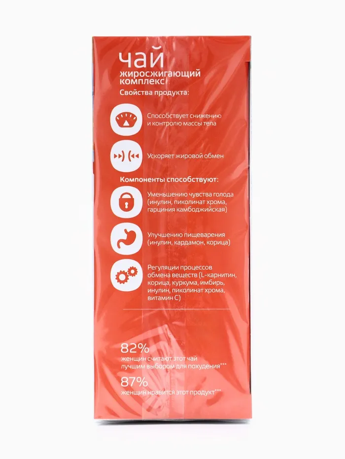 В составе чая для похудения эффективный жиросжигающий комплекс - инулин, витамин c, корица, l-карнитин, имбирь, кардамон, пиколинат хрома, куркума и экстракт плодов гарцинии камбоджийской. Он помогает быстрее и легче расставаться с лишними килограммами, регулировать обмен веществ, улучшать работу кишечника, снижать чувство голода и тягу к сладкому в течение всего дня.