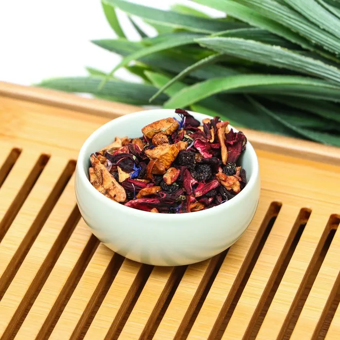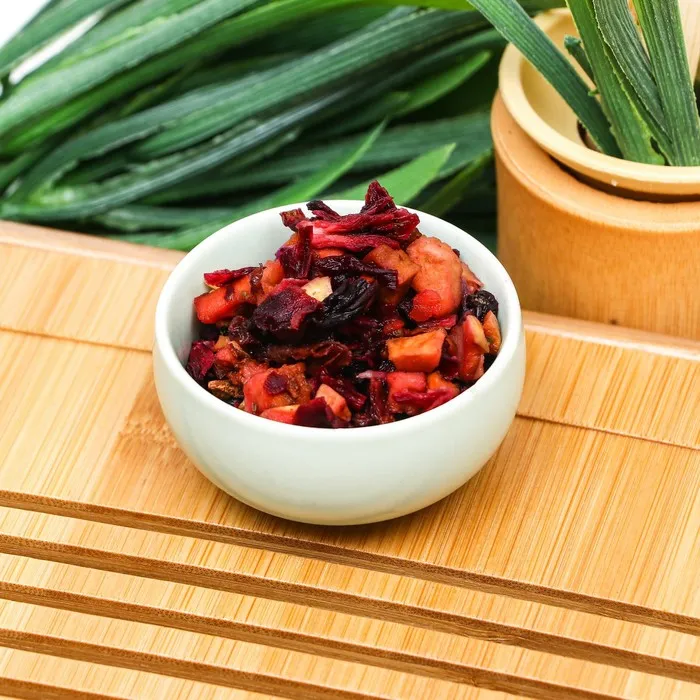 Насыщенные, яркие, полезные напитки с волшебным вкусом, приготовленные на основе лепестков цветов, трав, ягод и фруктов, собирательное название которых - фруктовый чай. Он радует своим характерным букетом. Напоминая о летнем солнышке и теплых деньках, особенную актуальность он приобретает в холодное время года. Чай, заваренный с заботой - волшебный напиток, повод для душевного чаепития. В богатом вкусе чайного напитка присутствуют сладость, уравновешенная кислинкой каркаде, нотки ягод, травяные и цветочные оттенки. Чай вызовет приятные ассоциации, повысит уровень эндорфинов и подарит настоящее наслаждение вкусом. Натуральные компоненты, входящие в состав фиточая, богаты витаминами и микроэлементами. Они повышают иммунитет, способствуют профилактике и лечению авитаминоза, ускоряют обменные процессы. Необычный вкус фруктового настоя освежает в жару и согревает в холодную погоду. Каждый его глоток принесет уют и гармонию, и непременно соберет за одним столом всех ваших родных и близких.