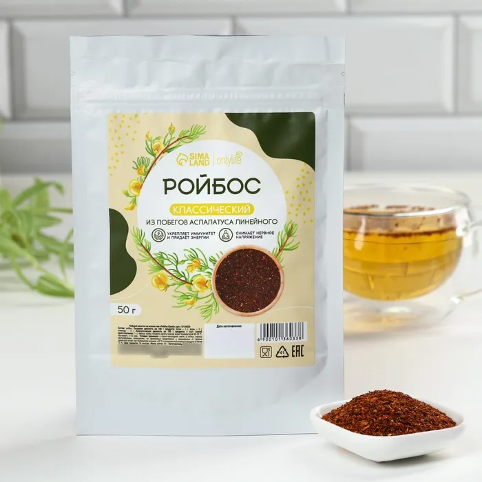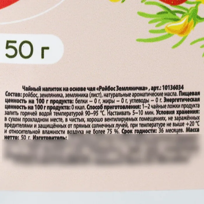 Чай китайский Ройбос - Ройбуш с земляникой, спокойствие и укрепление иммунитета, 50 г. — Характеристики