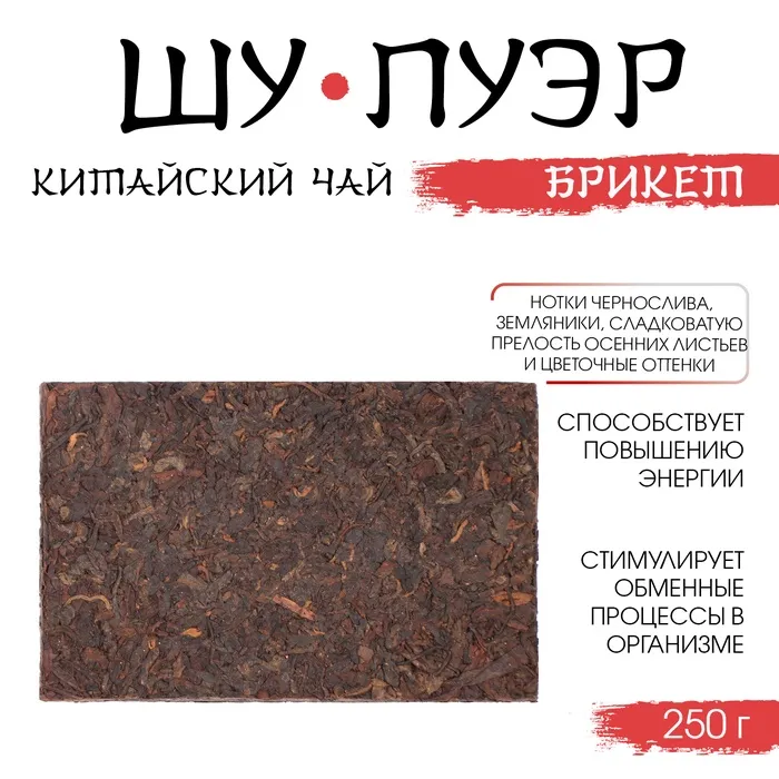 Брикет чёрного крупнолистового чая Шу Пуэр из уезда Мэнхай (провинция Юньнань, южный Китай) превратят ваше чаепитие в настоящую чайную церемонию.