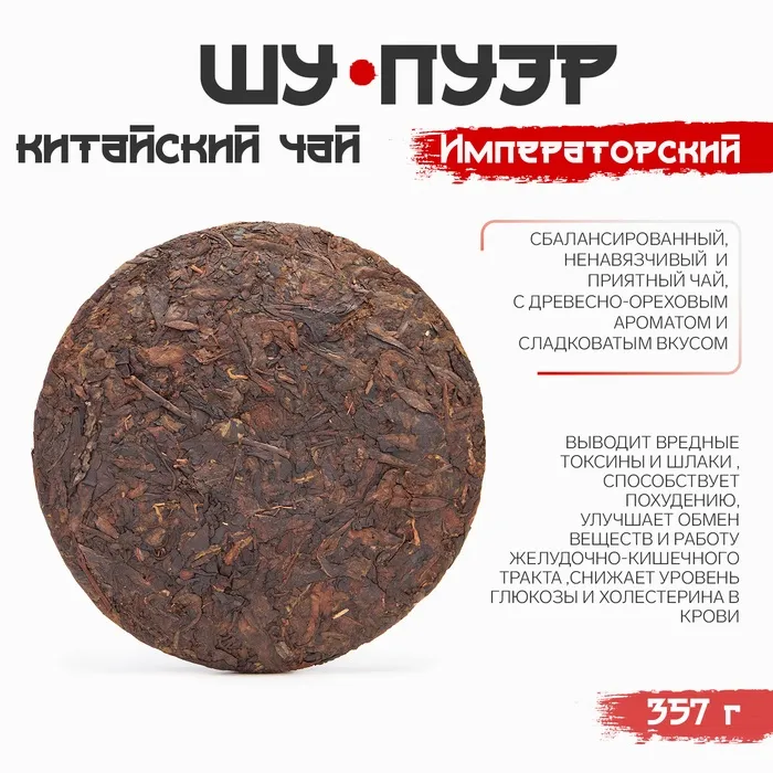 • Чай китайский выдержанный «Шу Пуэр. Императорский», Юньнань, 2019 г., блин, 357 г — Характеристики
