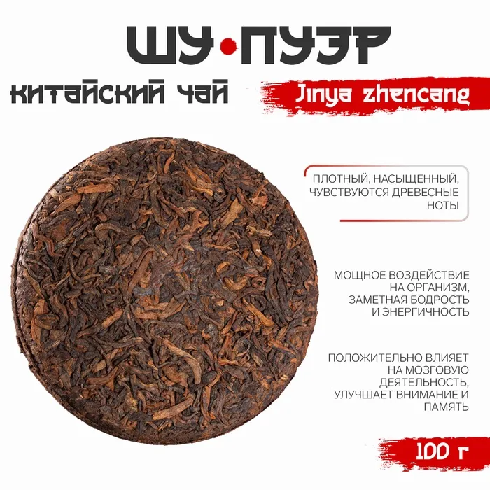 Чай китайский выдержанный «Шу Пуэр. Jinya zhencang», 2021 г., 100 г — Характеристики