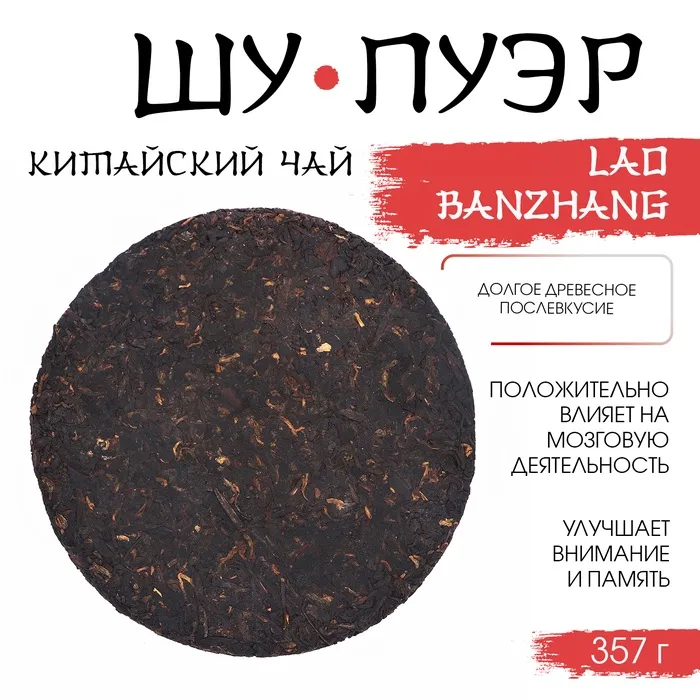 Чай китайский выдержанный «Шу Пуэр. Laobanzhang», Юньнань, 2017 г., блин, 357 г — Характеристики