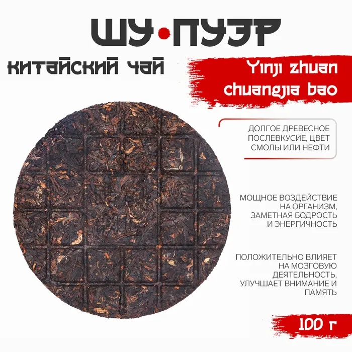 Чай китайский выдержанный «Шу Пуэр Yinji zhuan chuangjia bao», 2020 г., 100 г — Характеристики