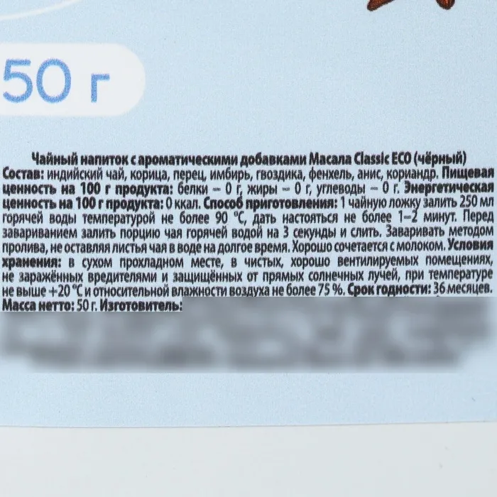 Состав: индийский чай, корица, перец, имбирь, гвоздика, фенхель, анис, кориандр.