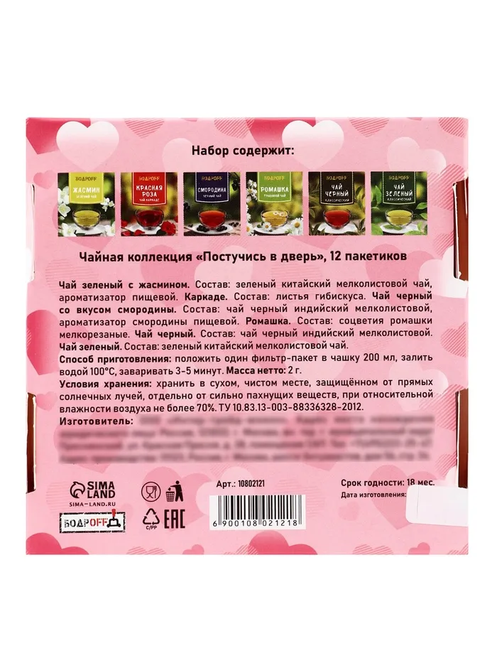 Чайная коллекция "Постучись в дверь" — это уникальный набор, созданный специально для празднования Международного женского дня 8 марта. В упаковке содержится 12 пакетиков ароматного чая, каждый из которых приглашает вас в мир тепла, заботы и нежности, идеально подходящий для этого особенного дня.