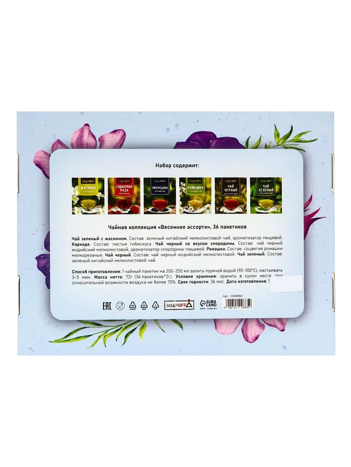 Эта коллекция станет замечательным подарком для любителей чая и прекрасным дополнением к вашему собственному запасу. Подарите себе и своим близким моменты весеннего вдохновения и радости с чайной коллекцией "Весеннее ассорти" и наслаждайтесь каждым глотком в это прекрасное время года!