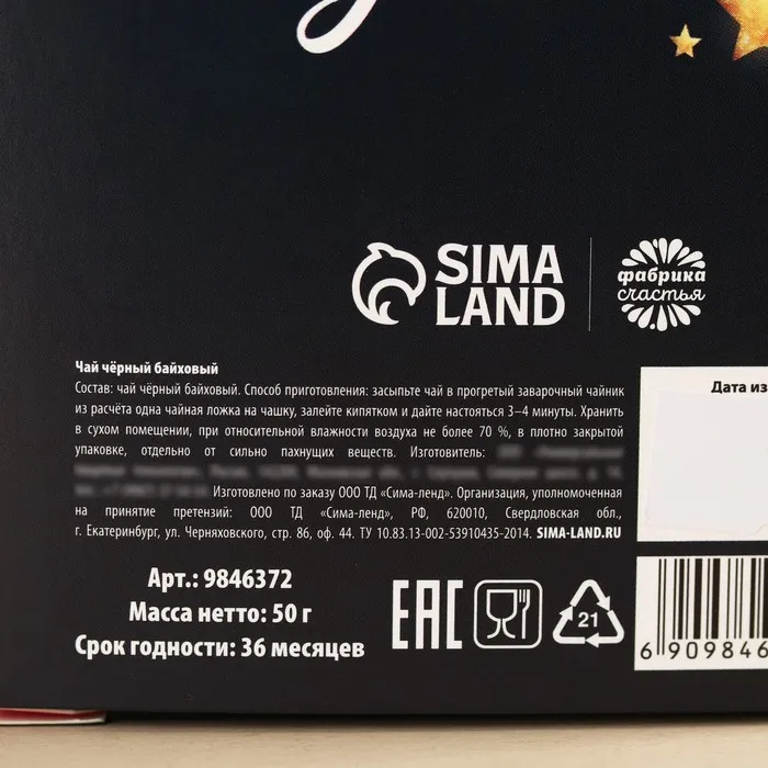 Чай новогодний чёрный «Чудесных моментов», с европодвесом, 50 г. — Характеристики