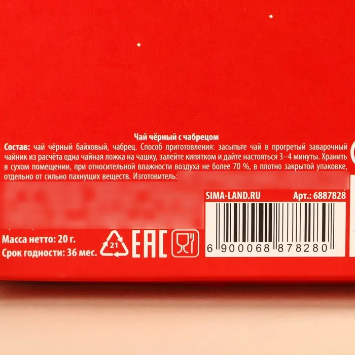Чай новогодний чёрный «Подарок от Деда Мороза», вкус: чабрец, 20 г. — Характеристики