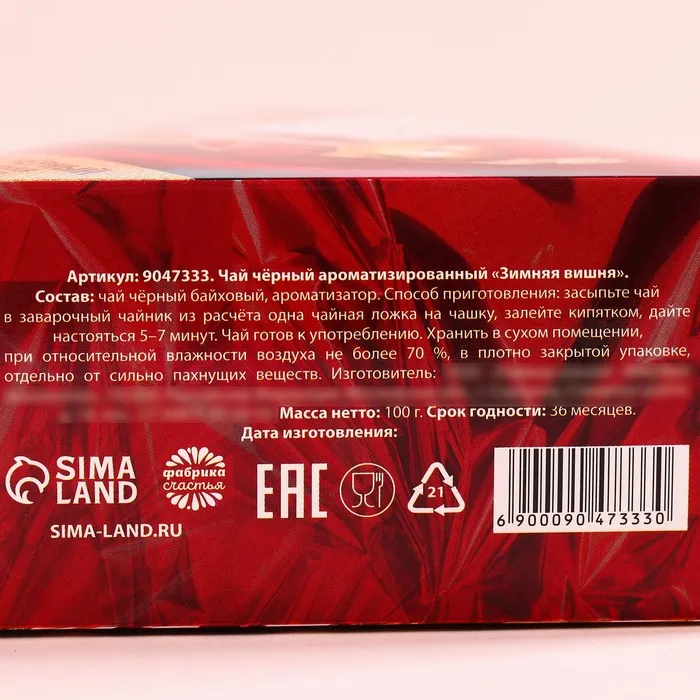 Чай новогодний чёрный «Самого роскошного нового года», вкус: зимняя вишня, 100 г. — Характеристики