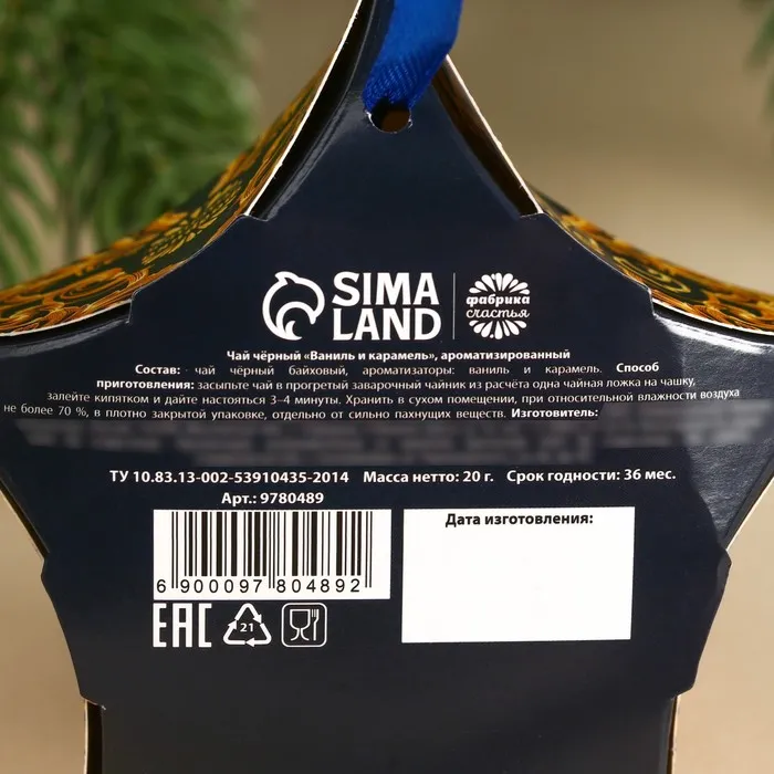 Чай новогодний чёрный «Сказочного Нового года», вкус: ваниль и карамель, 20 г. — Характеристики