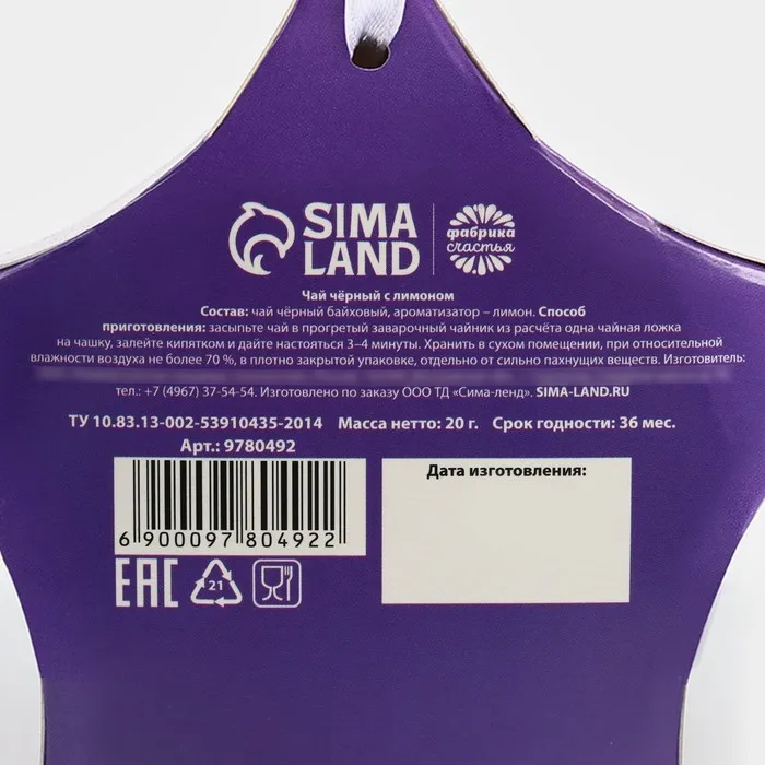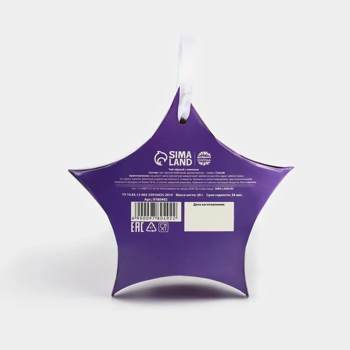 Чай новогодний чёрный «Талисман удачи», вкус: лимон, 20 г. — Характеристики