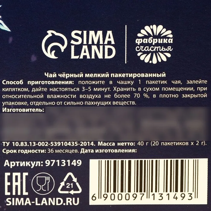 Чай новогодний чёрный «Тепла и уюта» в фильтр-пакетах , 20 шт. — Характеристики