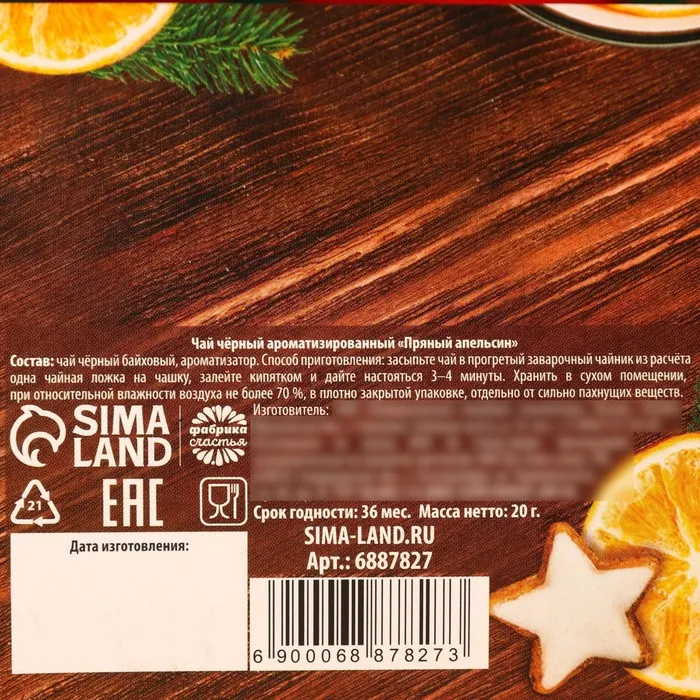 Чай новогодний чёрный «Тепла и уюта в Новом году», вкус: апельсин и корица, 20 г. — Характеристики