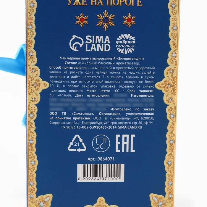 Чай новогодний чёрный «Зимняя Новогодняя сказка» в коробке-книге, вкус: зимняя вишня, 100 г. — Характеристики