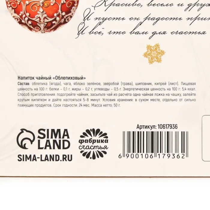 Чай новогодний ягодно - травяной с облепихой «Счастья», 50 г — Характеристики