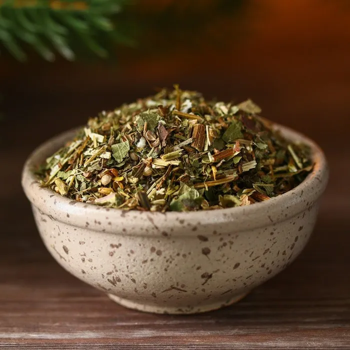 Состав: душица (трава), череда (трава), земляника садовая (лист), тысячелистник (трава), цикорий (трава).