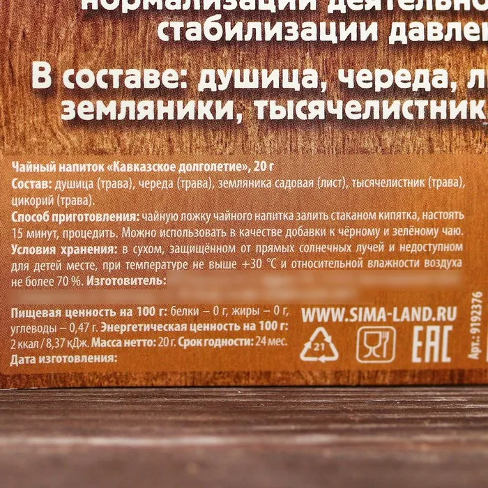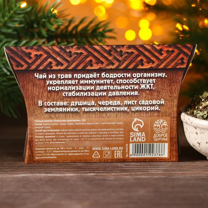 Чай новогодний травяной «Долгих лет жизни», 20 г. — Характеристики