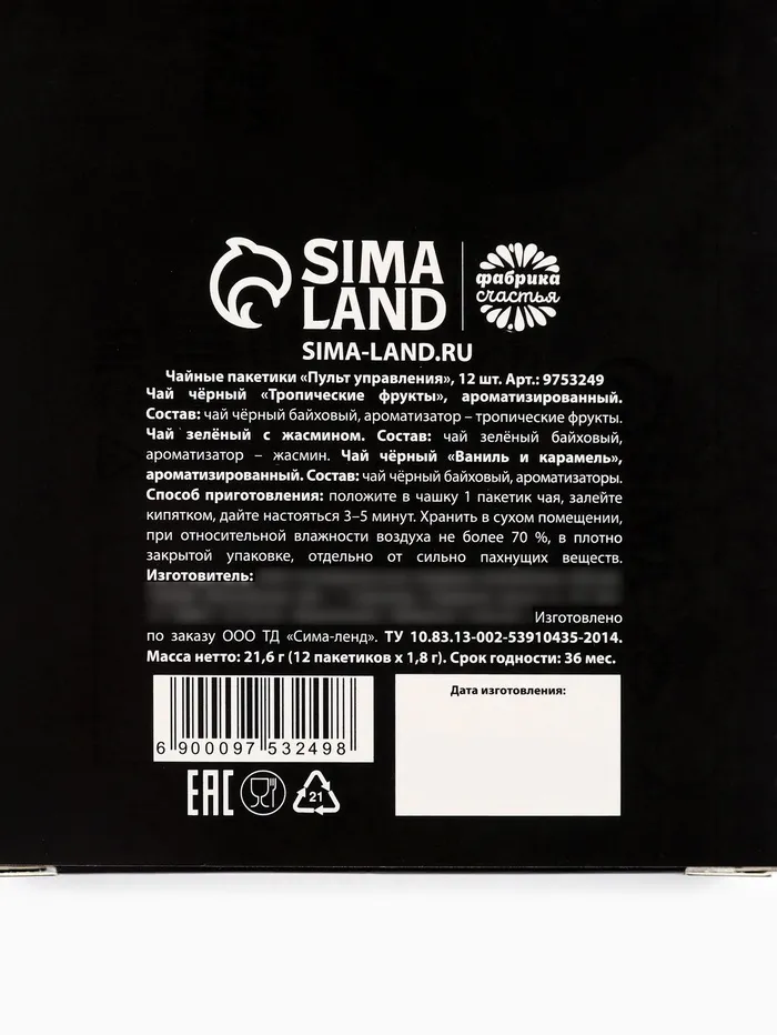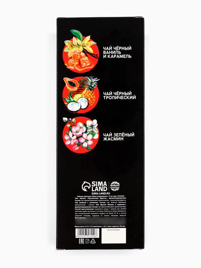 Чай новогодний в пакетиках «Пульт управления», 21,6 г (12 шт. х 1,8 г). — Характеристики