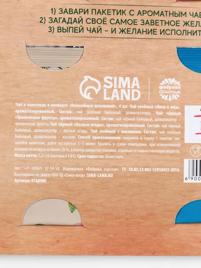 Чай новогодний в пакетиках «Уютного Нового года» в конверте, 7.2 г (4 шт. . х 1.8 г) — Характеристики