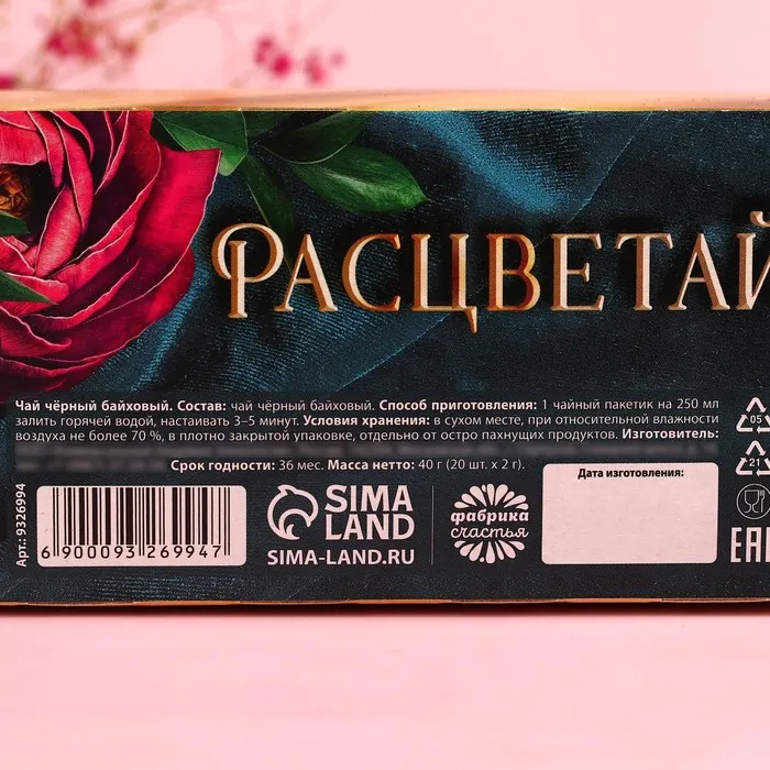 Чай подарочный чёрный «8 Марта», 20 шт. х 2 г. — Характеристики