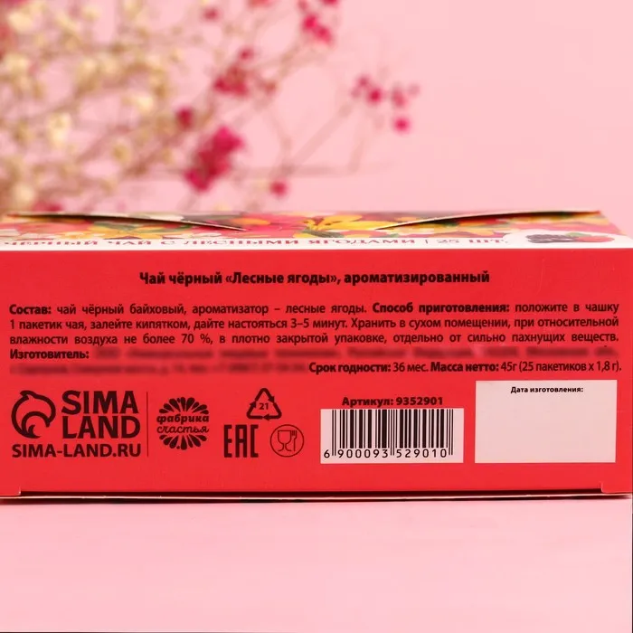 Чай подарочный чёрный «8 Марта» с лесными ягодами, 25 шт. х 2 г. — Характеристики
