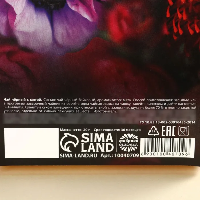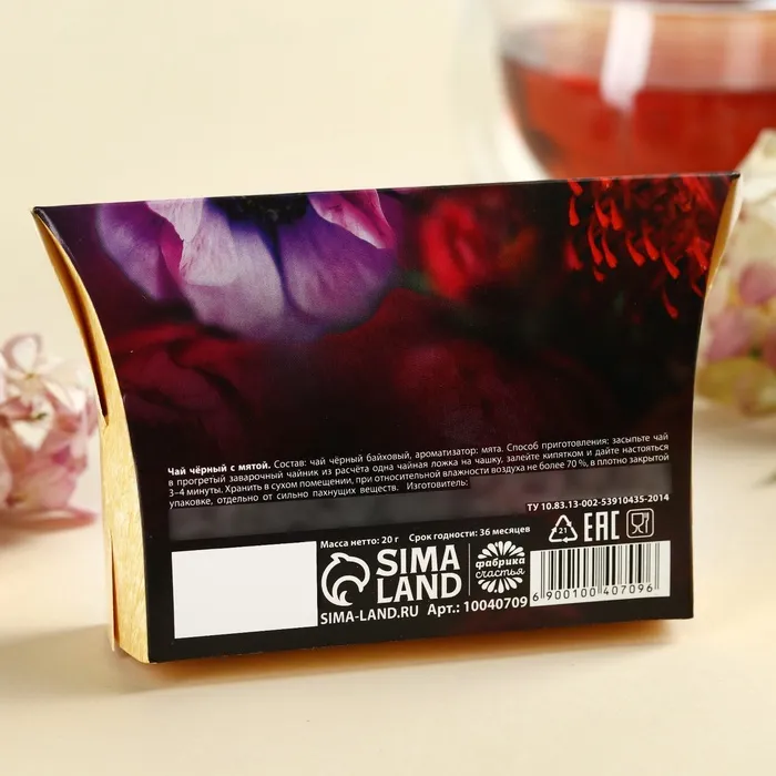 Чай подарочный чёрный «8 Марта», вкус: мята, 20 г. — Характеристики