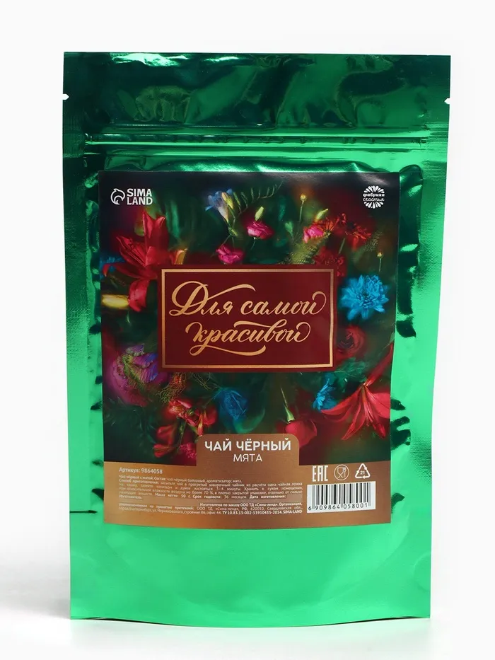 Чай подарочный чёрный «Для самой красивой» вкус: мята, 50 г. — Характеристики