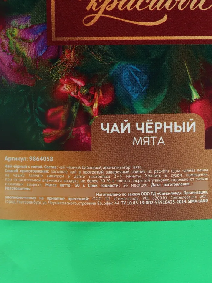 Состав: чай чёрный байховый, ароматизатор: мята.