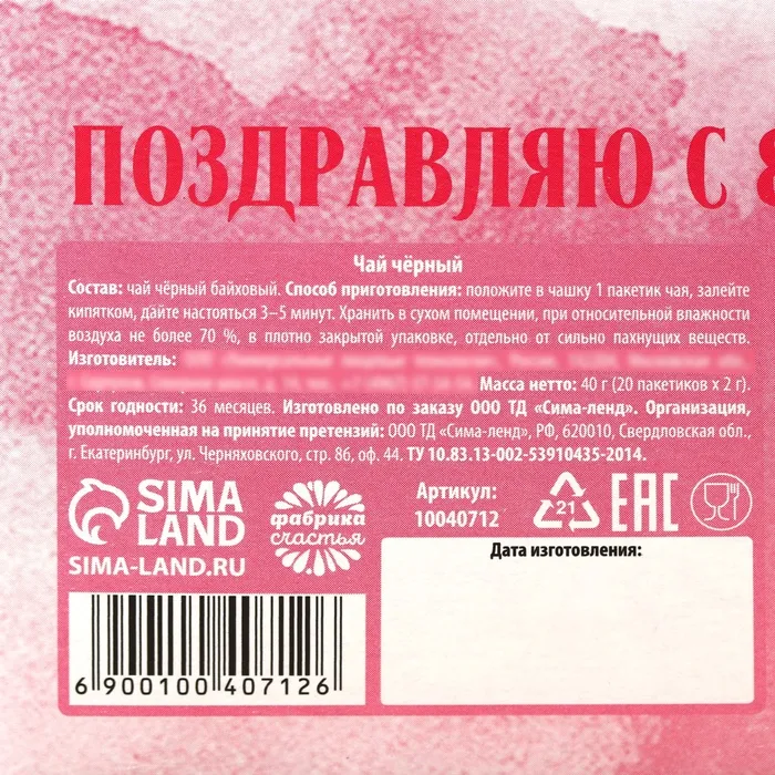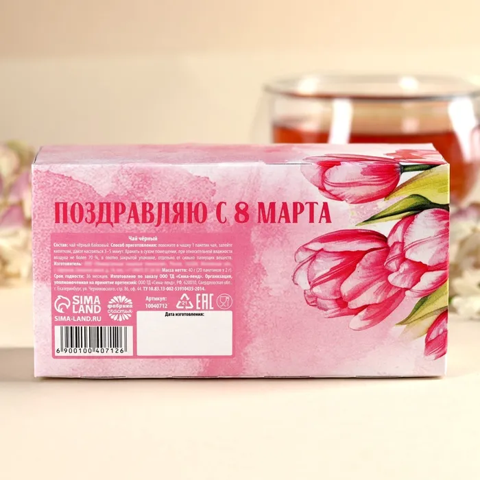Чай подарочный чёрный «Поздравляю с 8 Марта», 40 г (20 пакетиков х 2 г). — Характеристики