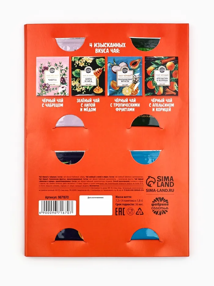 Масса нетто: 7,2 г ( 4 пакетика х 1,8 г).