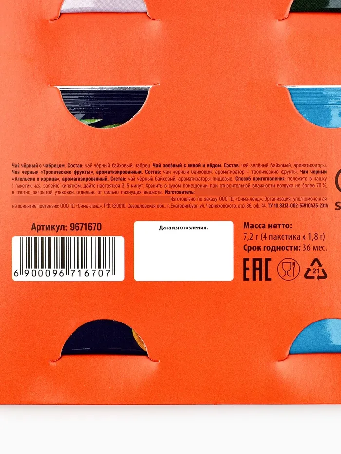 Состав: чай чёрный байховый, ароматизаторы пищевые.