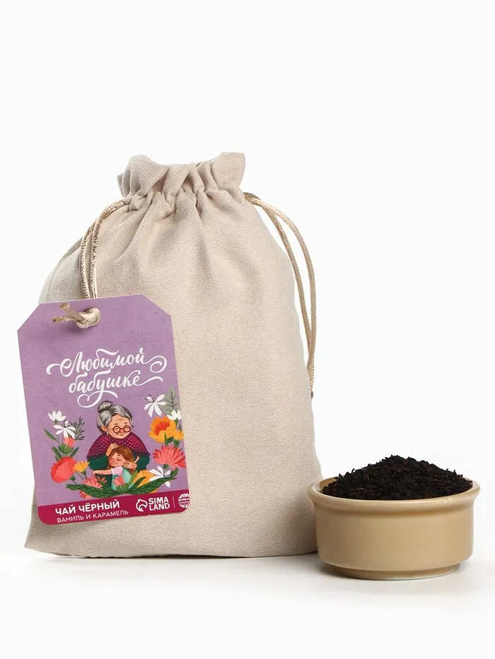 Чай подарочный «Любимой бабушке» в подарочном мешочке, вкус: ваниль и карамель, 100 г. — Характеристики