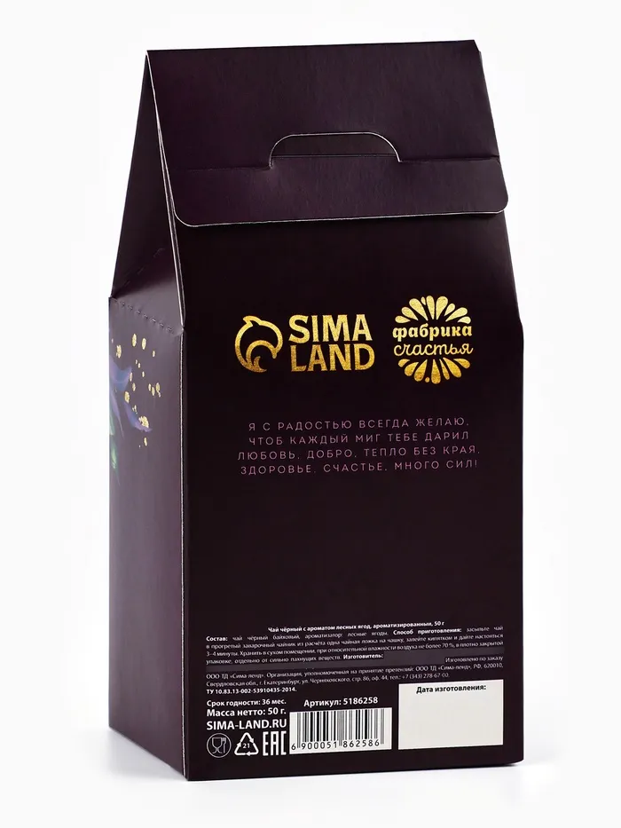 Состав: чай черный байховый, ароматизатор – лесная ягода.