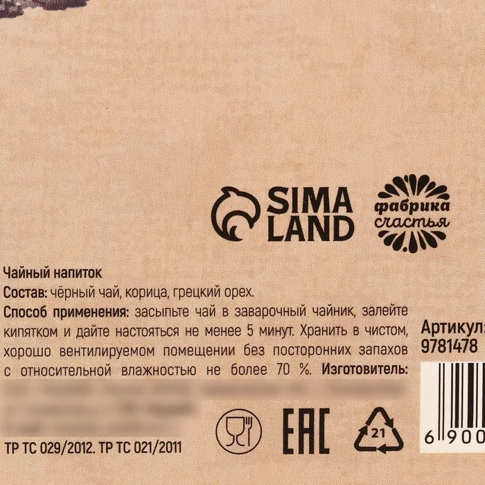 Чай подарочный «Моего героя зовут Папа», вкус: корица и грецкий орех, 50 г. — Характеристики