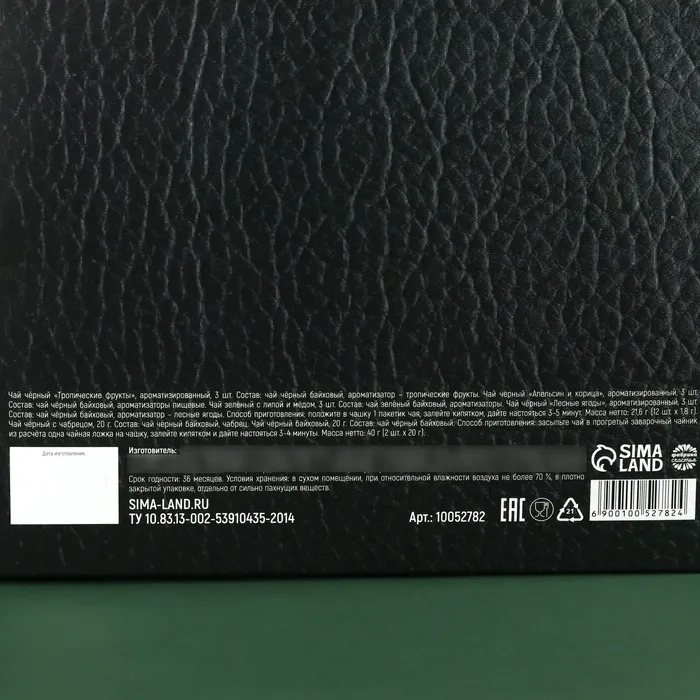 Состав: чай чёрный байховый, ароматизаторы пищевые.
