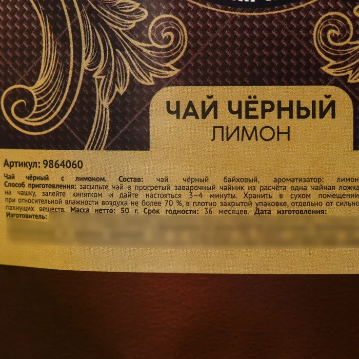 Состав: чай чёрный байховый, ароматизатор: лимон.