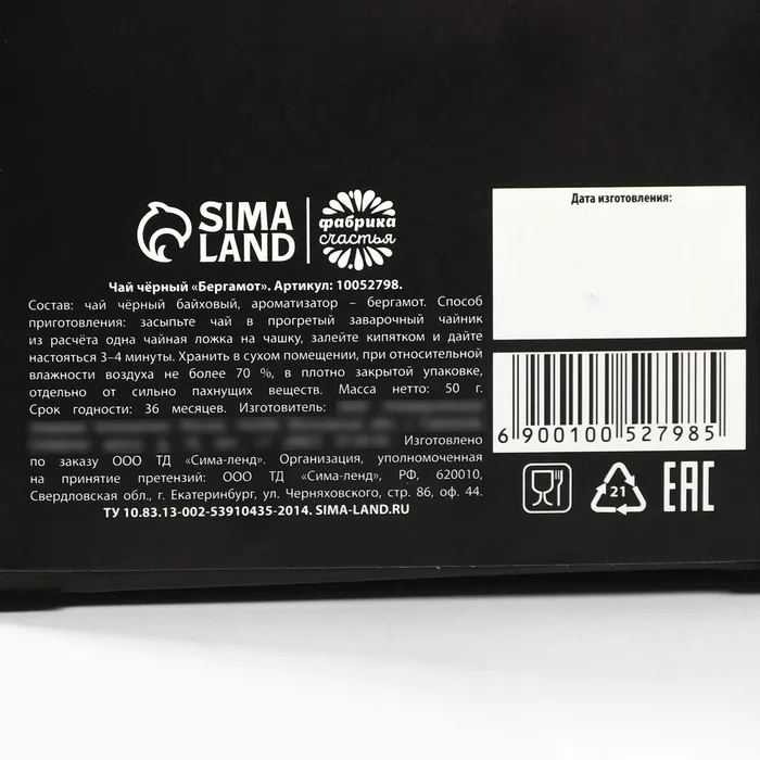 Чай подарочный «Никогда не сдавайся», вкус: бергамот, 50 г. — Характеристики