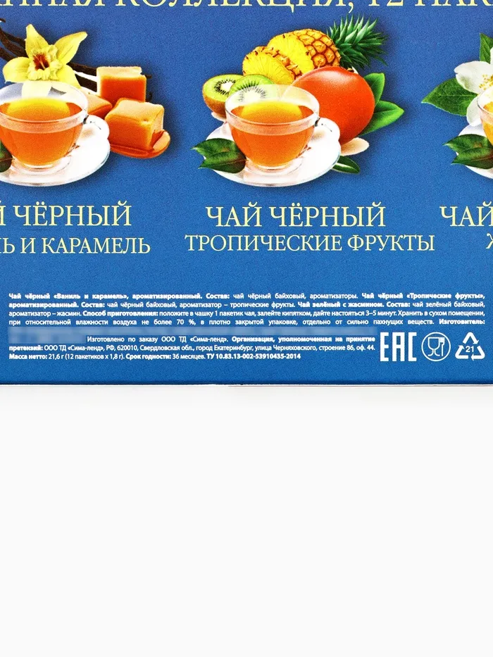 Чай подарочный «Паспорт» 3 вкуса, 12 пакетиков x 1,8 г. — Характеристики