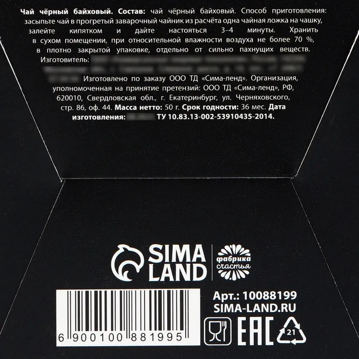 Состав: чай чёрный байховый.