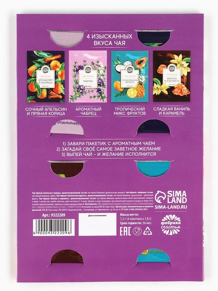 Состав: чай чёрный байховый, ароматизаторы пищевые.