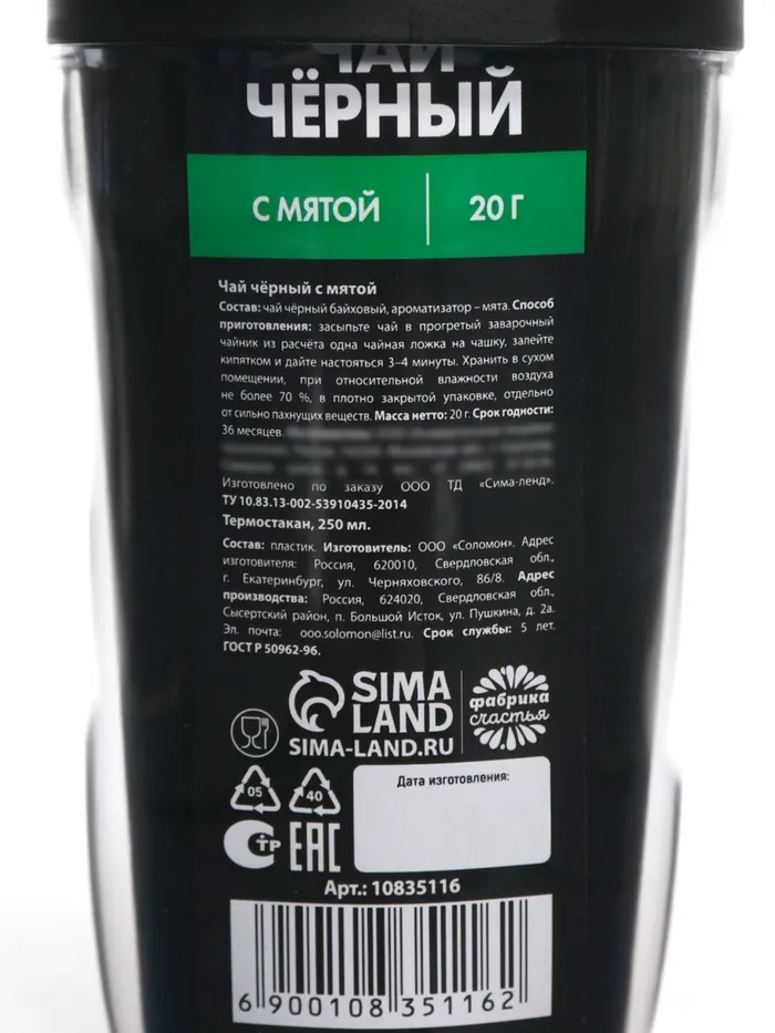 Чай подарочный в термостакане «Абьюзер», вкус: мята, 20 г — Характеристики