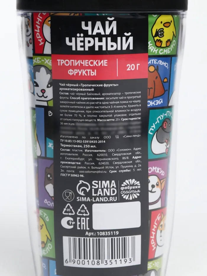 Чай подарочный в термостакане «Мемы», вкус: тропические фрукты, 20 г — Характеристики
