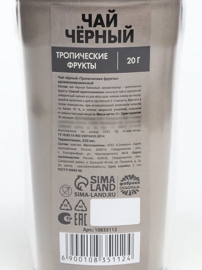 Состав: чай чёрный байховый, ароматизатор – тропические фрукты.