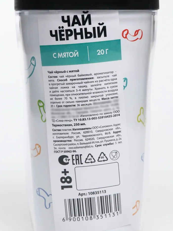Чай подарочный в термостакане «Мужское достоинство», вкус: мята, 20 г, 18+ — Характеристики