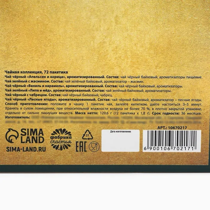 Чай подарочный «Время чудес», 72 п — Характеристики